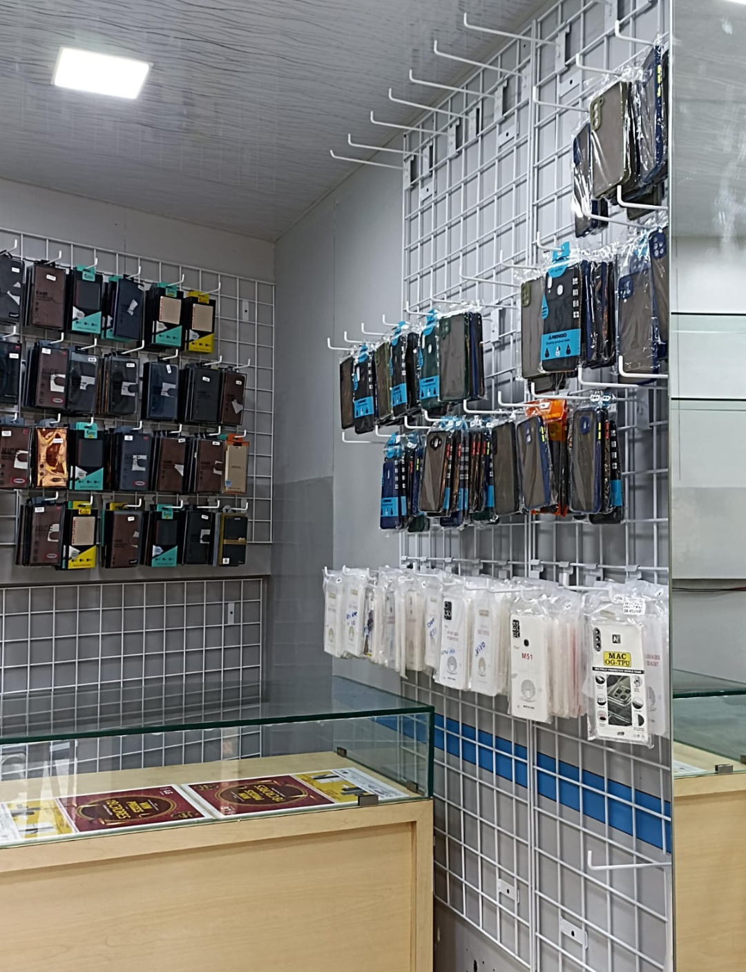 Grid and wall-mounted racks perfect for mobile and electronic accessory stores.